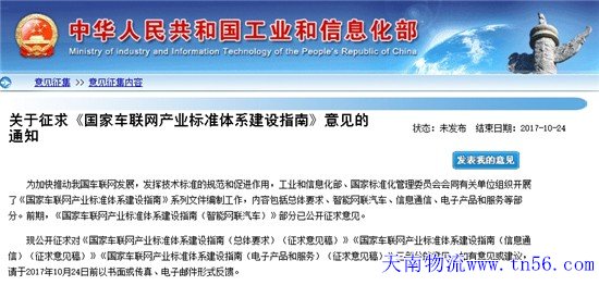 ,工業和信息化部、國家標準化管理委員會聯合公開征求對《國家車聯網產業標準體系建設指南(總體要求)(征求意見稿)》《國家車聯網產業標準體系建設指南(信息通信)(征求意見稿)》《國家車聯網產業標準體系建設指南(電子產品和服務)(征求意見稿)》三部分的意見。